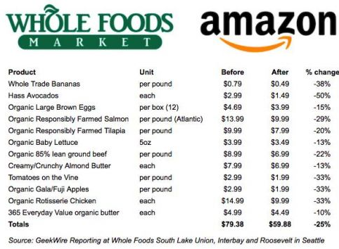 Whole Foods 在被收購(gòu)前后的價(jià)格對(duì)比
