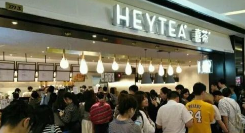 喜茶門(mén)口排隊(duì)的消費(fèi)者